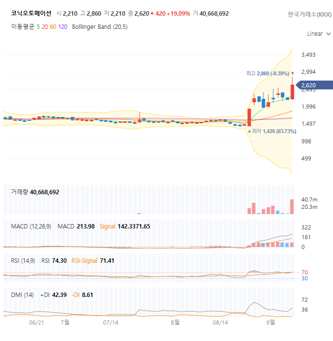 | 현재 주가 (25/09/05) | 2,620 원 | +19.09% 급등 |
