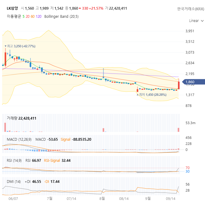 | 현재 주가 (25.09.18 종가) | 1,860원 | 전일 대비 21.57% 상승 |
