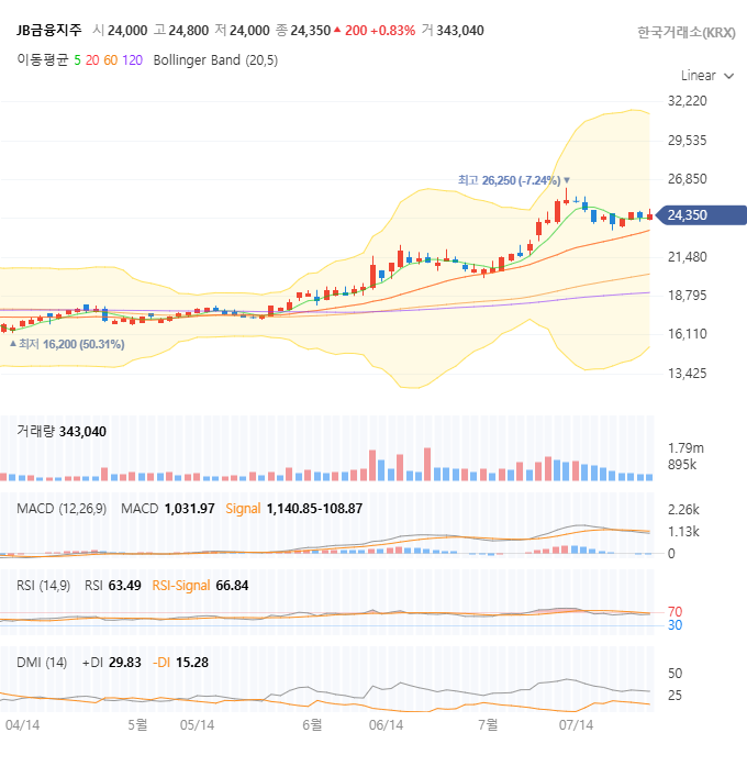 안녕하세요, 주식탐구생활입니다! 요즘 시장이 어수선한 가운데 우리 JB금융지주 주주님들, 얼굴에 웃음꽃이 피셨을 것 같습니다. 연일 좋은 소식과 함께 주가도 멋지게 우상향하고 있으니까요. 하지만 최근 최고가(26,250원)를 찍고 잠시 숨을 고르는 모습을 보이면서 '이거 팔아야 하나, 아니면 오히려 기회인가?' 고민이 많으실 텐데요. 그래서 오늘은 JB금융지주에 대해 속 시원하게 파헤쳐 보는 시간을 갖겠습니다. 이 회사가 과연 믿고 갈 만한 펀더멘탈을 가졌는지, 그리고 차트는 우리에게 어떤 힌트를 주고 있는지 함께 살펴보시죠! 😊
