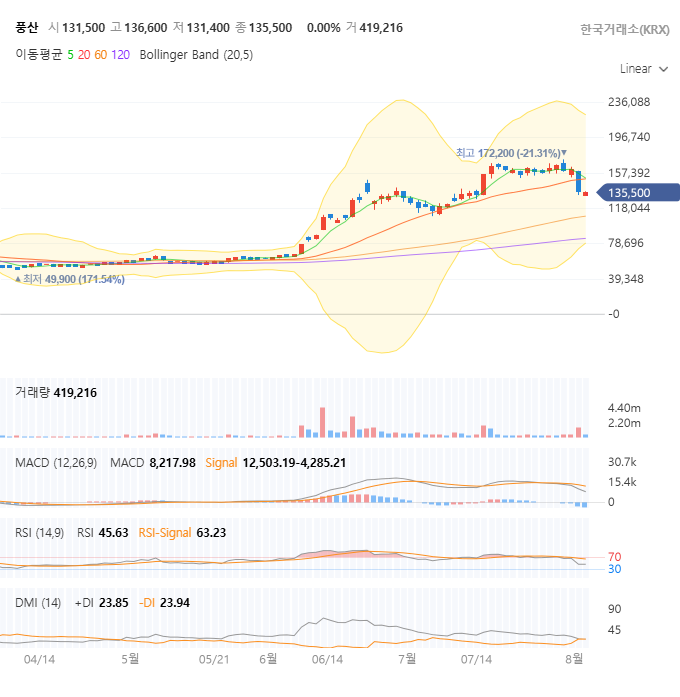 안녕하세요, 주식의 흐름을 읽어드리는 BariStock입니다! 요즘 시장 변동성이 만만치 않은데요. 특히 최근 엄청난 기세로 달리던 풍산이 2분기 실적 발표 이후 급락하면서 우리 주주님들, 마음고생이 심하시진 않으신가요? 고점에서 일부 조정은 예상했지만, 생각보다 낙폭이 커지면서 '이거 당장 팔아야 하나, 아니면 오히려 기회로 보고 물타기를 해야 하나?' 고민이 많으실 겁니다.