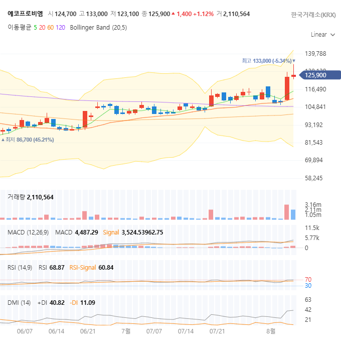 | 주요 저항선 | 133,000 원 | 직전 고점. 이 가격을 돌파해야 추가 상승 기대 |