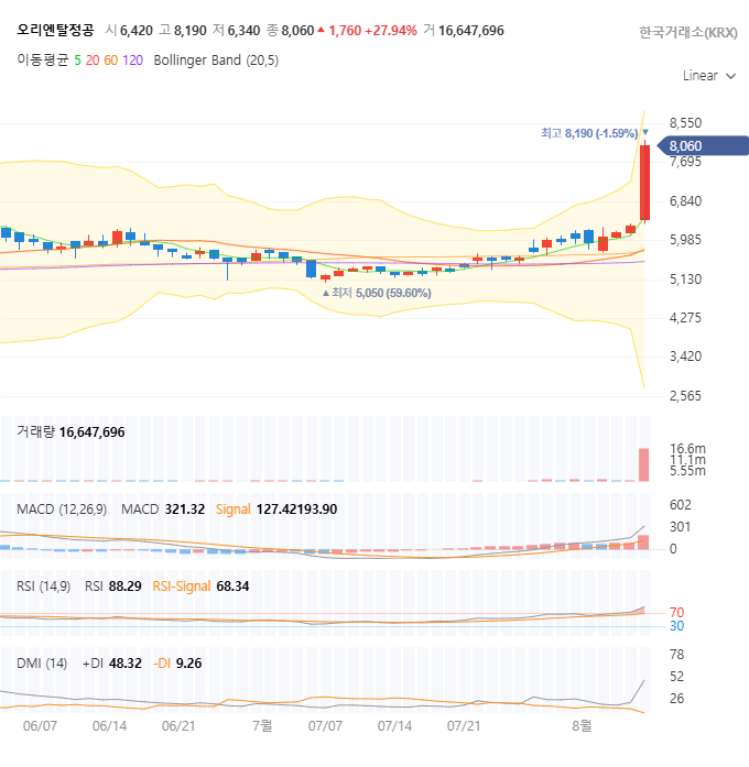 | 현재 주가 (종가) | 8,060 원 | 전일 대비 27.94% 상승 |