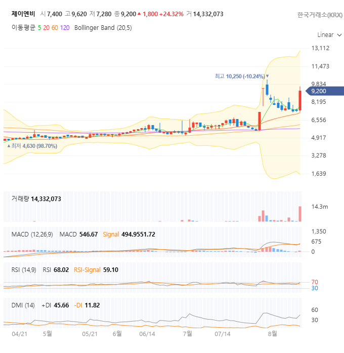 | 현재 주가 (25.08.12 종가) | 9,200원 | 상승 추세 진행 중 |